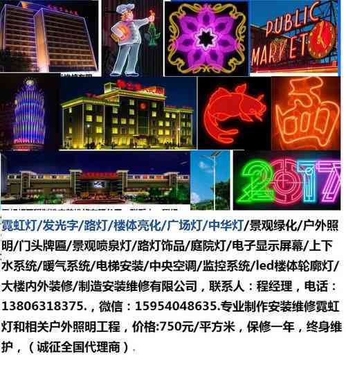 天津市霓虹燈13806318375/發光字/路燈/樓體亮化/廣場燈/中華燈/景觀綠化/戶外照明/門頭牌匾/景觀噴泉燈/路燈飾品/庭院燈/電子顯示屏幕/上下水系統/暖氣系統/電梯安裝/中央空調/監控系統/led樓體輪廓燈/大樓內外裝修/大樓綜合布線/樓體輪廓燈/鋁合金門窗/道路景觀燈/景觀綠化/廣場景觀亮化/景觀噴泉燈/樓體景觀亮化廣場景觀亮化/廠區景觀路燈亮化/街道景觀亮化/公共場所景觀亮化/體育館景觀亮化/咖啡廳燈光裝飾/健身房霓虹燈裝飾/橋梁亮化/高架橋亮化/跨江大橋景觀亮化/標識廣告/廟宇古建筑霓虹燈亮化,,,,,,,,,,,, ,,,,,,天津市霓虹燈發光字路燈樓體亮化廣場燈中華燈景觀綠化戶外照明門頭牌匾景觀噴泉燈路燈飾品庭院燈工程制造安裝維修有限公司,聯系人:程經理,電話:13806318375.,專業制作安裝維修霓虹燈和相關戶外照明工程,價格:750元/平方米,保修一年,終身維護,(誠征全國代理商),專業從事商業門面,招牌、街道景觀的整體設計。設計制作安裝噴繪廣告牌,發光字,燈箱,LED燈飾,霓虹燈,電子顯示屏,單立柱,路燈,樓體光亮工程等等,天津市大型霓虹燈工程制造安裝維修有限公司,專業制作安裝整座工作區的門頭,樓頂大字和各棟大樓的亮化制作安裝維修。專業從事整條街道的商業門面,招牌、街道景觀的主題整體設計施工制作安裝維修。,是戶外視頻專業制作安裝公司。更多詳情,登陸:公司網站:http://www.366x24.com/gq/3535.html。
